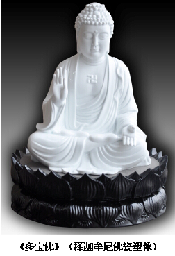 該《多寶佛》(釋迦牟尼佛瓷塑像)以臺灣佛光山佛陀紀(jì)念館中釋迦牟尼佛像為原型,以大球泥為原料,吸收我國傳統(tǒng)佛塑像優(yōu)點(diǎn),用醴陵高溫?zé)萍挤,由一位工藝美術(shù)大師和陶瓷藝術(shù)大師聯(lián)袂創(chuàng)作。其中001號已于今年5月30日捐贈給了臺灣佛光山開山宗長星云大師!
