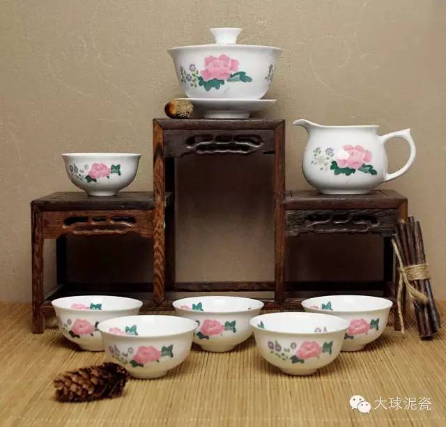 據(jù)史料記載,自唐代始湖南湘江一帶便廣種木芙蓉,因此芙蓉花又是湖南的代名詞,毛澤東主席在詩詞《七律·答友人》中寫道“我欲因之夢寥廓,芙蓉國里盡朝暉”,可見我們的毛主席對于自己故鄉(xiāng)有“芙蓉國”這樣的雅稱也是特別喜愛。而由大球泥為制瓷原材料,高溫燒制而成的釉下五彩《芙蓉花茶具》,瓷質(zhì)釉色純凈 細膩,高潔無瑕,冰肌玉骨。