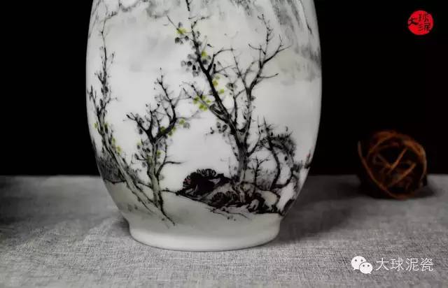 《江南春早》瓶,構(gòu)圖開闊,氣勢(shì)磅礴,韻律和諧,經(jīng)過(guò)高溫?zé)贫傻拇笄蚰啻筛菨嵃谉o(wú)瑕,晶瑩剔透,呈現(xiàn)出飽和富麗的色彩。