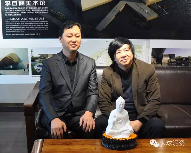 2014年3月14日,在旅美畫家李自健老師的長沙創(chuàng)作室,大球泥瓷藝董事長滕召華親自請了一尊潔白如玉的《多寶佛》(釋迦牟尼佛瓷塑像)給李自健老師。當初,湖南大球泥瓷藝有限公司最開始有用珍稀原料大球泥塑造佛像題材的想法時,就得到了李老師的鼎力支持。在創(chuàng)作‘釋迦牟尼佛瓷塑像’的過程中,李老師更是給了很多寶貴的意見,他希望湖南大球泥瓷藝有限公司能塑造出有世界聲望的佛雕作品。