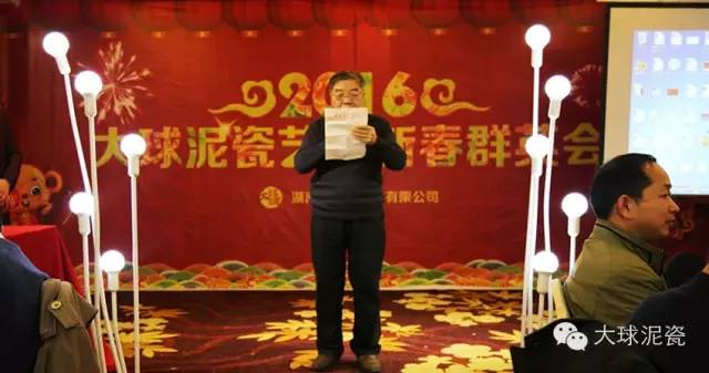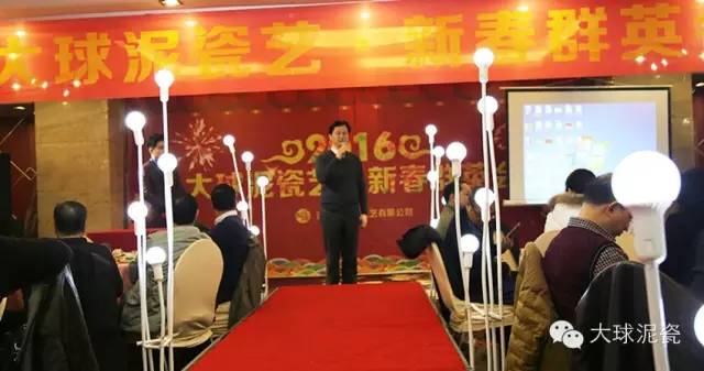 值此農(nóng)歷新年即將到來之際,大球泥瓷藝為感謝一路以來一直關(guān)心和支持我們的各位朋友,于2016年1月16日舉行《大球泥瓷藝·新春群英會》。原計劃舉辦大型新春團拜會,但考慮到大家節(jié)前忙于工作,改為舉辦“新春群英會”,邀請了部分嘉賓,有政府相關(guān)廳局領(lǐng)導(dǎo)、工藝美術(shù)大師、陶瓷收藏家、各類媒體代表和各商會會長代表等百人參加。