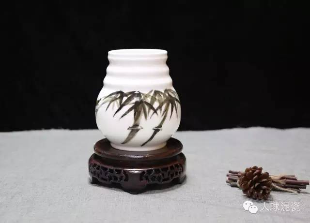 今日大球泥瓷藝推出的這款作品,由省級(jí)工藝美術(shù)大師黃永平創(chuàng)作。以竹為題材作畫,名為《高節(jié)》,并在背面題寫了“蕙風(fēng)吹高節(jié)”五字。顧名思義,是取竹“節(jié)節(jié)高”的美好寓意,象征步步高升。