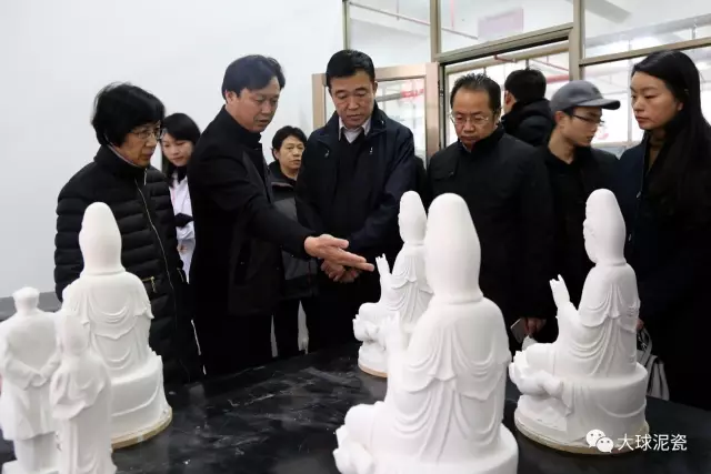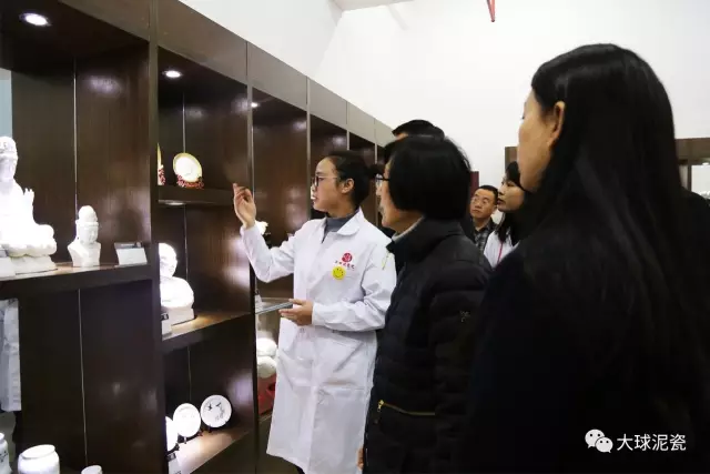 耿焱教授一行受到公司董事長(zhǎng)滕召華的熱情歡迎,先后隨引一一參觀了大球泥瓷大師原創(chuàng)工作室、瓷雕創(chuàng)作室、大球泥煉制區(qū)、質(zhì)量檢驗(yàn)區(qū)、精品展廳等,并詳細(xì)了解了公司的特色原料及研發(fā)、創(chuàng)作情況。
