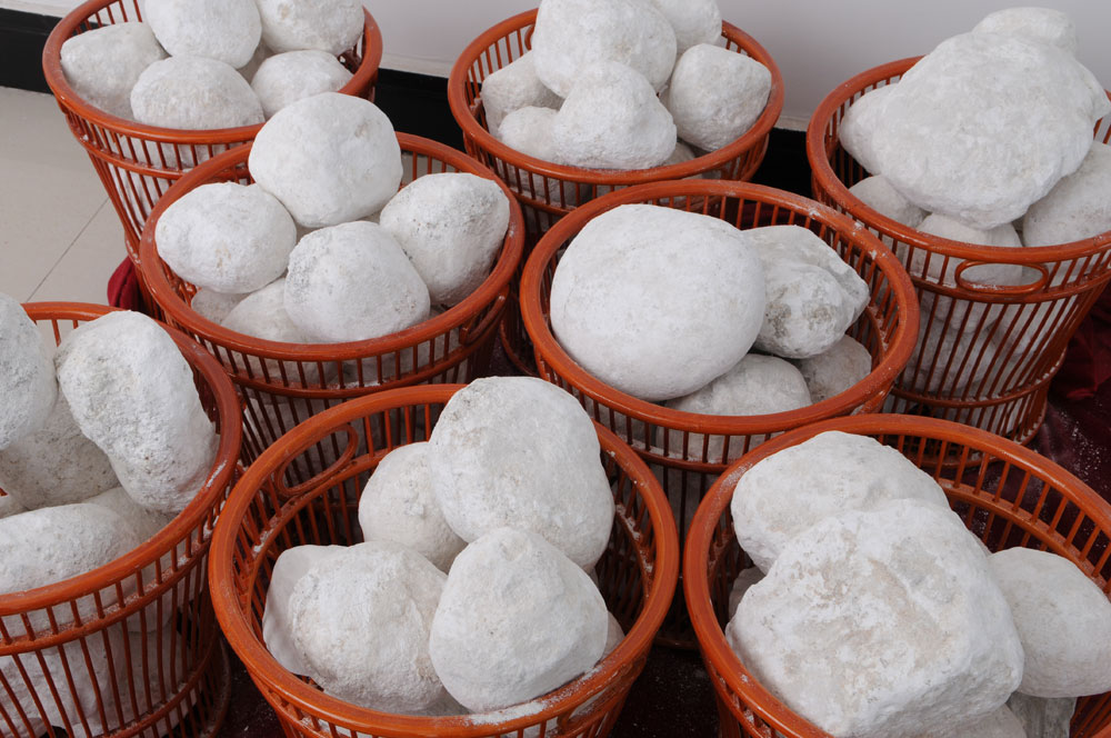 大球泥是偉晶巖風(fēng)化物,雪白球狀體,形似恐龍蛋;含鋁量極高,含鐵量極少,是制作陶瓷的稀缺原料。至今世界只發(fā)現(xiàn)兩個(gè)礦源,一個(gè)是英國,二戰(zhàn)時(shí)枯竭;一個(gè)是湖南雪峰山,上世紀(jì)八十年代枯竭。現(xiàn)存于世就一百多 噸,絕大部分被大球泥瓷藝公司搶救性保護(hù)收藏,并審慎研究、開發(fā)、利用。