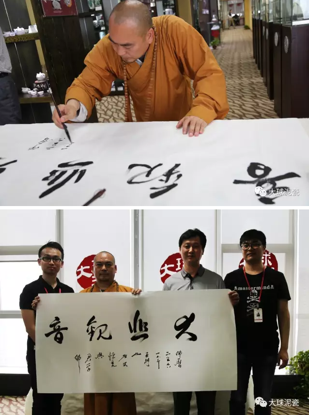 《觀世音》瓷雕得到了懷梵大師的好評(píng),并現(xiàn)場(chǎng)贈(zèng)送墨寶表達(dá)對(duì)大球泥瓷藝的支持。