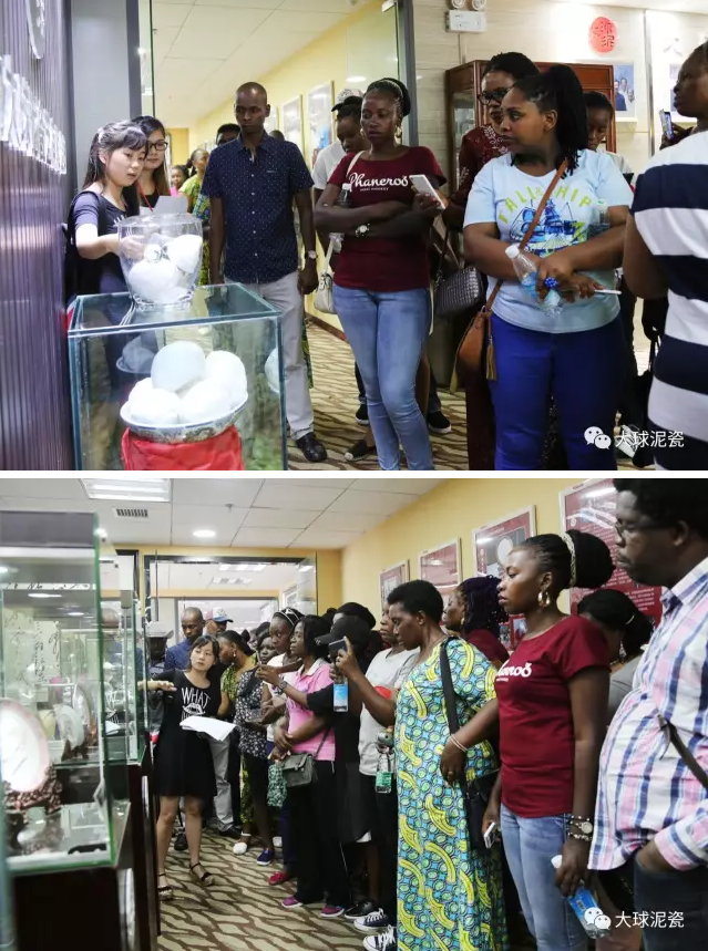學(xué)員們對大球泥非常感興趣,對溫潤如玉的大球泥瓷更是稱贊不已,并表示希望這些瓷器能出口到國外,到他們的國家去。大家現(xiàn)場紛紛與大球泥瓷拍照留影。
