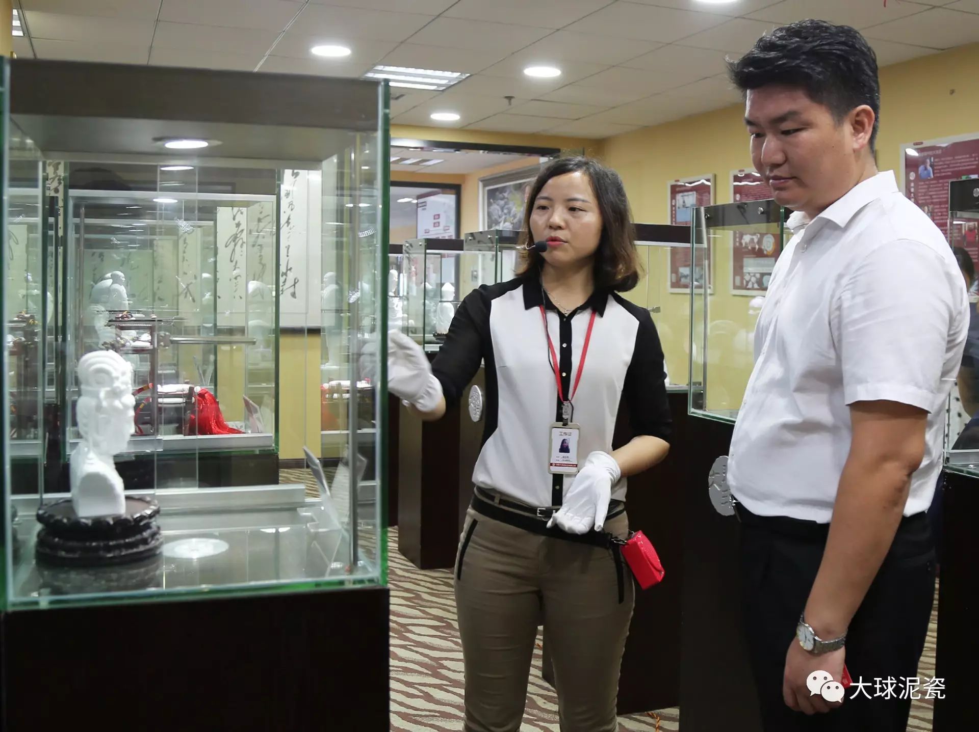 肖部長一行在滕董的陪同下參觀了大球泥瓷精品展廳,仔細(xì)聽取了工作人員對大球泥原料保護(hù)性收藏、創(chuàng)新創(chuàng)意研發(fā),以及大球泥瓷在佛教系列、紅色系列、高端藝術(shù)收藏品、生活用瓷等作品的特點(diǎn)介紹。