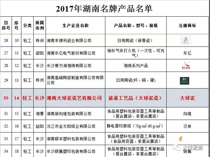 【喜訊】大球泥瓷榮獲“2017年湖南名牌產(chǎn)品”