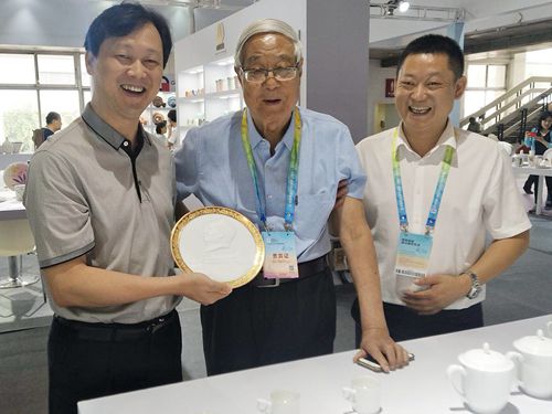 展覽會期間,中國陶瓷泰斗、清華美院教授張守智老師信步來到大球泥展廳,主動向隨行人員介紹:我與滕總相識多年,十余年前,滕總有遠見,搶救性保護收藏了世界上已經(jīng)難尋的大球泥,這種泥做出的瓷器最具藝術(shù)價值與收藏價值。如這枚毛澤東同志的浮雕瓷像就是大球泥的經(jīng)典作品。一直以來我都囑咐他對待大球泥原料要審慎使用,現(xiàn)在我依舊要囑咐滕總,一定要把大球泥用好。