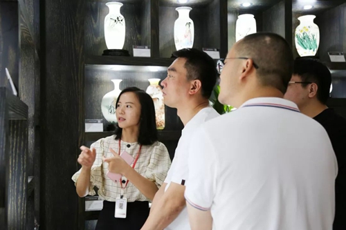 湯總一行首先參觀了公司企業(yè)文化展廳和產(chǎn)品展示廳,營銷總監(jiān)徐亞美作了全程講解。湯總一行對(duì)大球泥原料這一核心競(jìng)爭(zhēng)力表現(xiàn)出濃厚的興趣,認(rèn)為大球泥精典作品出彩,文化價(jià)值和藝術(shù)價(jià)值非凡,單論白色瓷質(zhì)的高貴瑩潤(rùn),就已是精品,其工藝水平更是高超。