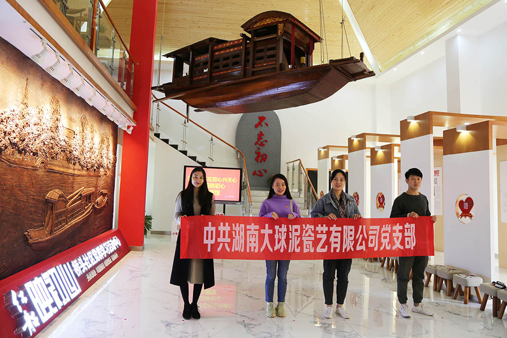 中共湖南大球泥瓷藝有限公司支部黨員在黨支部書記張玲的帶領(lǐng)下,先后前往長(zhǎng)沙外灘樓宇“緣起湘江”、橋頭社區(qū)“紅船映初心”、金桂社區(qū)“心中的梁家河”、標(biāo)志樓宇“光輝歷程”四大黨性教育基地參觀學(xué)習(xí),感悟入黨初心。 在青年毛澤東求學(xué)、交友、創(chuàng)業(yè)、磨礪、求索和繼業(yè)方面的故事中,感悟毛澤東主席堅(jiān)定共產(chǎn)主義信仰的初心。 在觀看紅船模型、聆聽紅船故事、重溫入黨誓詞的親身體驗(yàn)中,領(lǐng)悟開天辟地、敢為人先的紅船精神。 在習(xí)近平總書記七年知青歲月的故事中,感受總書記堅(jiān)定為中國(guó)人民謀幸福,為中華民族謀復(fù)興的初心。 在回顧中國(guó)共產(chǎn)黨的光輝發(fā)展歷程中,堅(jiān)定實(shí)現(xiàn)共產(chǎn)主義遠(yuǎn)大理想和中國(guó)特色社會(huì)主義共同理想的初心。 自中共中央《關(guān)于開展第二批“不忘初心、牢記使命”主題教育的指導(dǎo)意見》文件印發(fā)以來,為貫徹落實(shí)習(xí)近平總書記重要指示精神和中央、省委關(guān)于開展主題教育的部署要求,中共湖南大球泥瓷藝有限公司黨支部開展了一系列以主題黨日、專題黨課、志愿服務(wù)、組織生活會(huì)、實(shí)地學(xué)習(xí)為形式的主題教育活動(dòng)。 不忘初心、牢記使命,就要賡續(xù)精神力量,從黨的光輝歷史中汲取源源不斷的前進(jìn)動(dòng)力。從主題教育中,反思個(gè)人,堅(jiān)定理想、百折不撓的奮斗精神,立黨為公、忠誠(chéng)為民的奉獻(xiàn)精神;反思企業(yè),只有弘揚(yáng)工匠精神,把每一道工序做到極致,打造自己的品牌,才能承擔(dān)起記錄新時(shí)代、書寫新時(shí)代、謳歌新時(shí)代的使命。