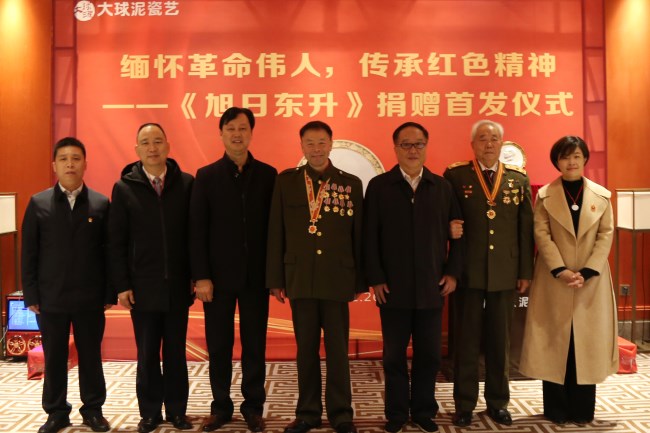 本次活動由湖南大球泥瓷藝有限公司與韶山旅游發(fā)展集團(tuán)共同主辦,由大球泥瓷藝營銷總監(jiān)姚衛(wèi)主持。滕召華董事長首先說,在偉人誕辰紀(jì)念日捐贈《旭日東升》意義非凡,公司成立七年,一直在講好中國故事、傳播紅色文化。這款《旭日東升》以已故著名雕塑家張松鶴創(chuàng)作的毛澤東主席浮雕為原模、以毛澤東故居為背景再創(chuàng)作,全球限量發(fā)售2019枚。隨后,滕董事長鄭重地將編號為0001的《旭日東升》作品呈遞給韶旅集團(tuán)李飾峰老總手中。李總發(fā)言表示感謝,他說大球泥瓷藝公司很有大愛,這幾年一直堅(jiān)持捐贈,一直在用藝術(shù)作品弘揚(yáng)偉人精神、傳播紅色文化。