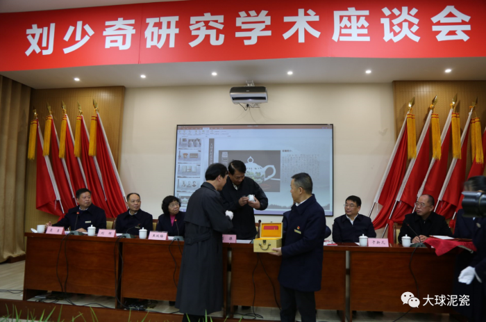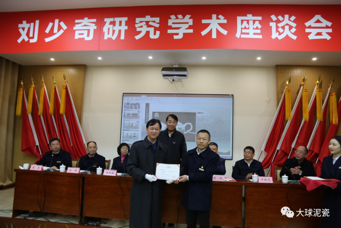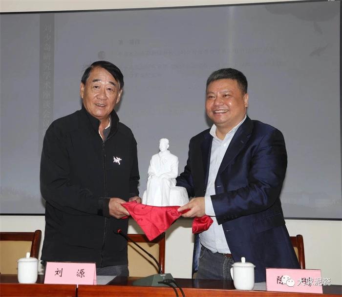 隨后,進(jìn)行“劉少奇研究學(xué)術(shù)座談會”和文物資料藝術(shù)品捐贈活動。劉暉書記致辭,劉源將軍作了重要講話,來自全國各地的學(xué)者代表發(fā)言交流。在藝術(shù)品捐贈活動中,由大球泥瓷藝承造、劉少奇故里管理局定制的《劉少奇同志》瓷塑像由陳剛部長敬贈給了劉源將軍。劉源將軍接受作品后仔細(xì)端詳,被眼前潔白陶瓷塑像的還原度和精美度所震撼,并特別強(qiáng)調(diào):“我一定會把瓷像擺放到我的辦公桌上”。