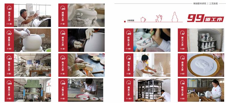 融合創(chuàng)新,制勝王道。為了融合創(chuàng)新藝術(shù)瓷,他在傳統(tǒng)的72道制瓷工藝上,規(guī)范流程,改進(jìn)技術(shù),提高品質(zhì),經(jīng)過(guò)幾年實(shí)驗(yàn),最終確立了“大球泥瓷”的99道工序,更好地凸顯了大球泥瓷“白、潤(rùn)、透”的特性,大球泥被譽(yù)為陶瓷中的愛(ài)馬仕。
