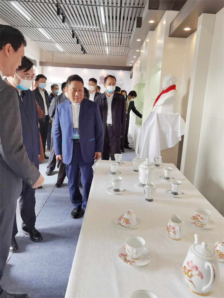 國家文化和旅游部部長胡和平一行到湘瓷館巡展,董事長滕召華介紹了湖南陶瓷的發(fā)展歷程及獨(dú)有特色,講解了“毛瓷”制作技術(shù)及稀缺大球泥原料,匯報了非遺傳承及融合創(chuàng)新取得成就。胡部長認(rèn)為釉下五彩瓷色彩清新、畫面豐富,贊譽(yù)大球泥瓷設(shè)計新穎、白潤通透,指示湖南陶瓷要傳承融合、守正創(chuàng)新。