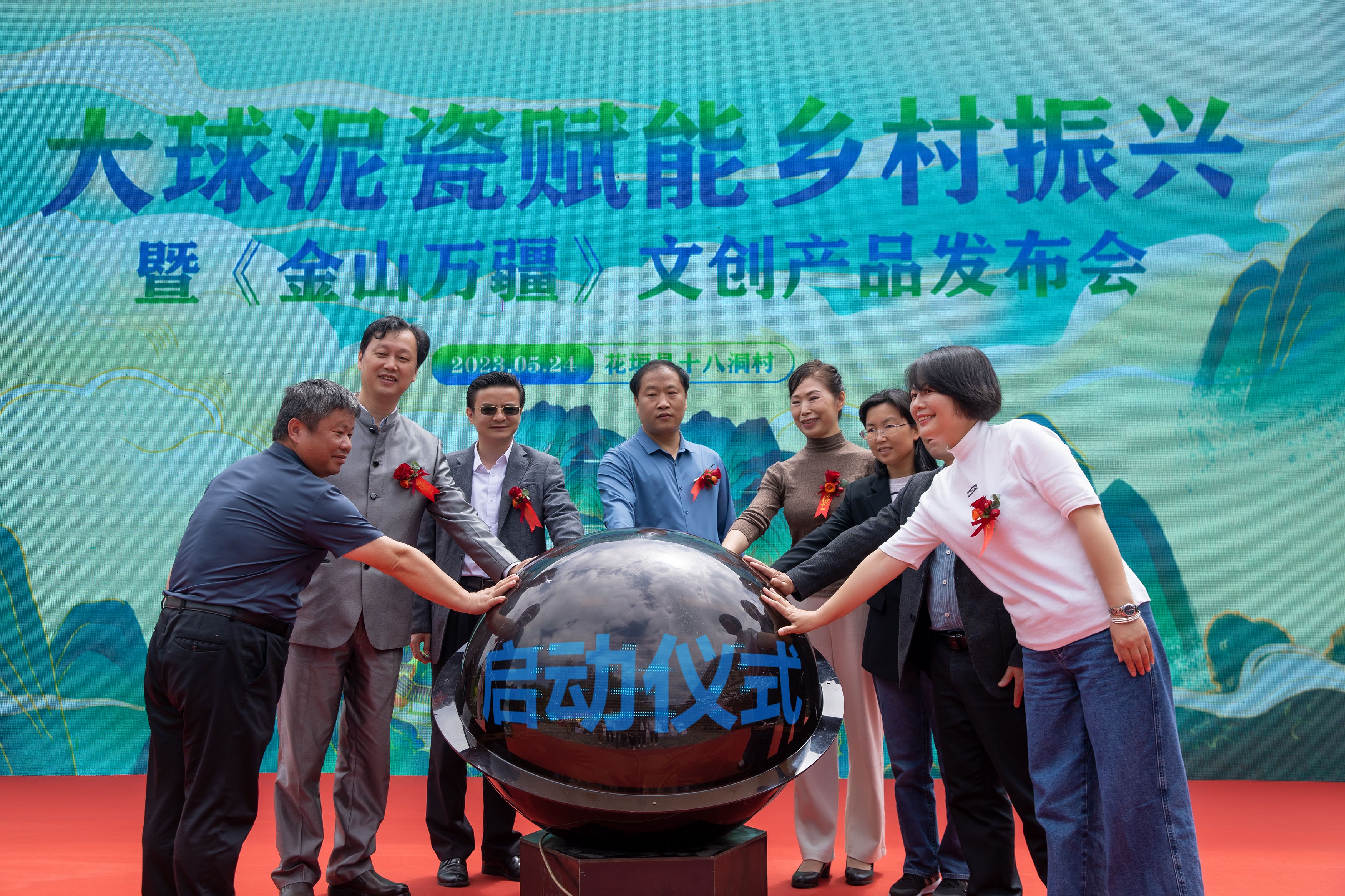 2023 年 5 月 24 日上午,大球泥瓷賦能鄉(xiāng)村振興暨《金山萬(wàn)疆》文創(chuàng)新品發(fā)布會(huì)在花垣縣十八洞村村部舉行。省文旅廳三級(jí)調(diào)研員劉彬、長(zhǎng)沙市委宣傳部四級(jí)調(diào)研員何小紅、湘西州文旅廣局副局長(zhǎng)呂冠軍、花垣縣委常委、宣傳部長(zhǎng)滕召帆、十八洞村委會(huì)副主任、經(jīng)濟(jì)聯(lián)合社理事長(zhǎng)龍書優(yōu)等出席。